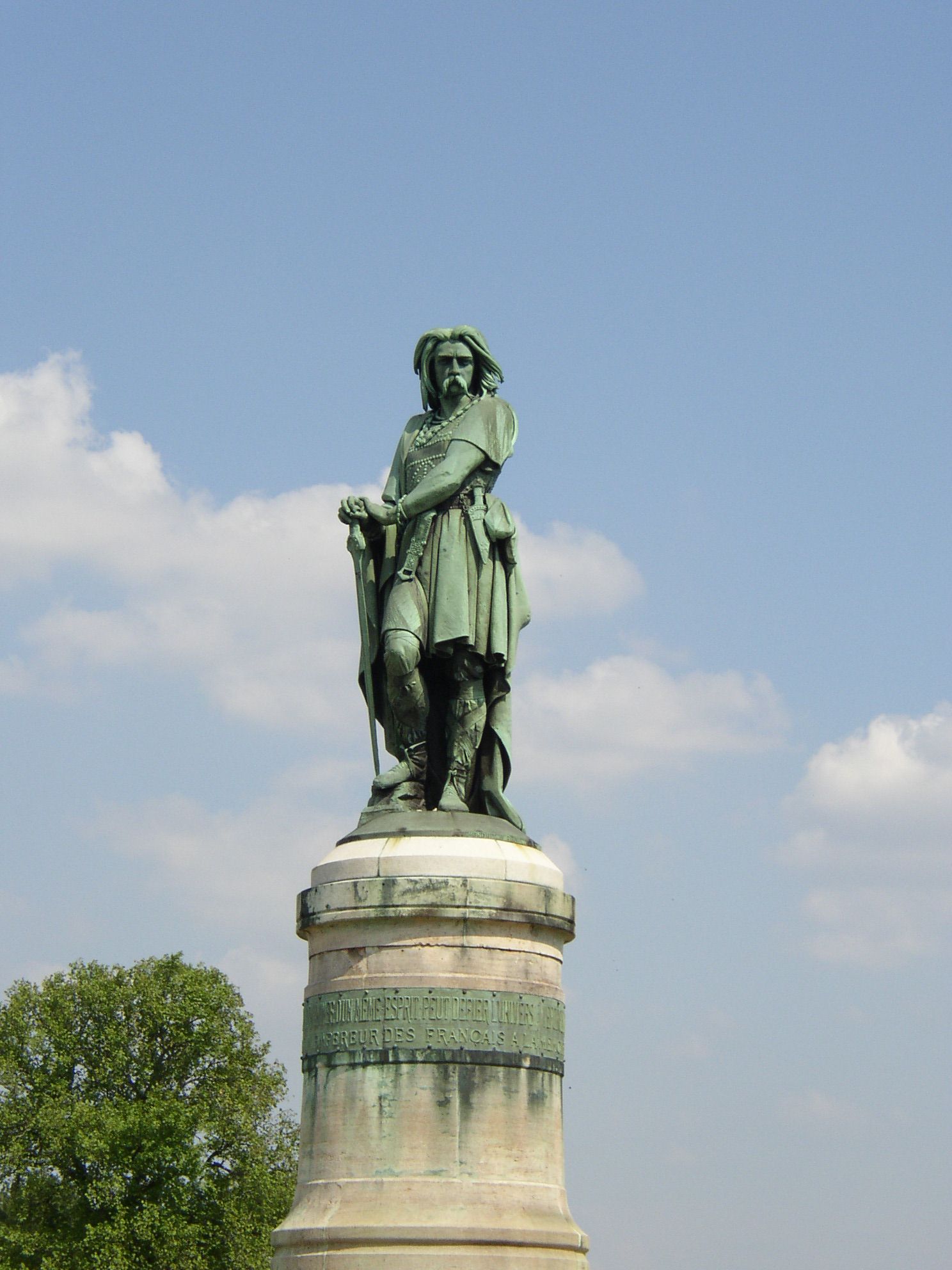 (90,1) His rebus confectis in Haeduos proficiscitur; civitatem recipit. (90,2) eo legati ab Arvernis missi: quae imperaret, se facturos pollicentur. imperat magnum numerum obsidum. (90,3) legiones in hiberna mittit. captivorum circiter XX milia Haeduis Arvernisque ( 90,4) T. Labienum cum duabus legionibus et equitatu in Sequanos proficisci iubet; huic M. Sempronium Rutilum attribuit. (90,5) C. Fabium legatum et L. Minucium Basilum cum legionibus duabus in Remis conlocat, ne quam a finitimis Bellovacis calamitatem accipiant. (90,6) C. Antistium Reginum in Ambivaretos, T. Sextium in Bituriges, C. Caninium Rebilum in Rutenos cum singulis legionibus mittit. (90,7) Q. Tullium Ciceronem et P. Sulpicium Cavilloni et Matiscone in Haeduis ad Ararim rei frumentariae causa conlocat. ipse Bibracte hiemare constituit. (90,8) huius anni rebus cognitis Romae dierum viginti supplicatio redditur. Die Haeduer und Arverner unterwerfen sich Caesar, der in Bibracte den Winter verbringt. In Rom feiert man 20 Tage lang den Triumph. Die Statue:
