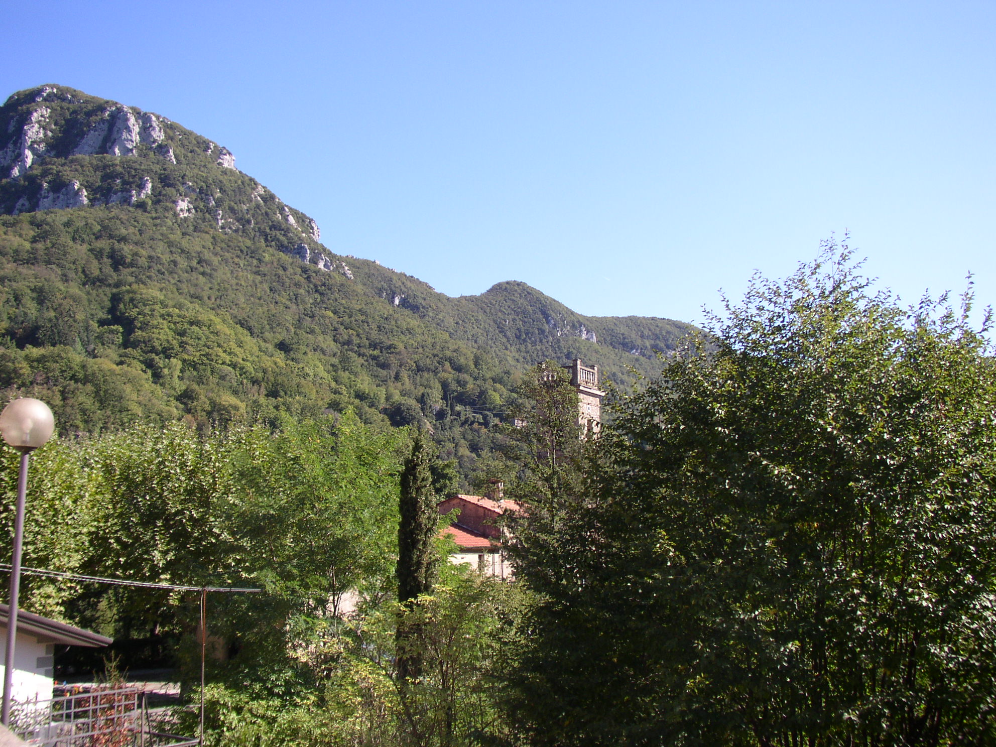 Blick auf Kirchturm (links) und Ossario (rechts oben) |