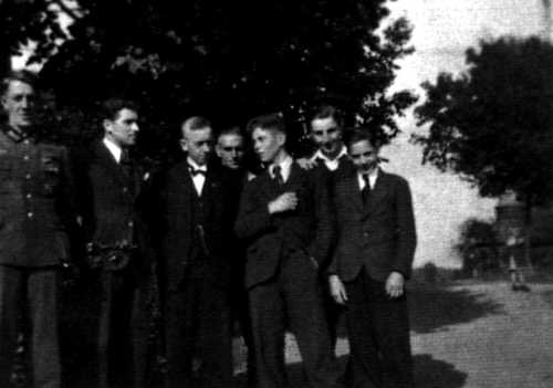 Der alte Herr Kümpel (3. von li) und sechs Mitarbeiter; Bertus ist der 2 von re.