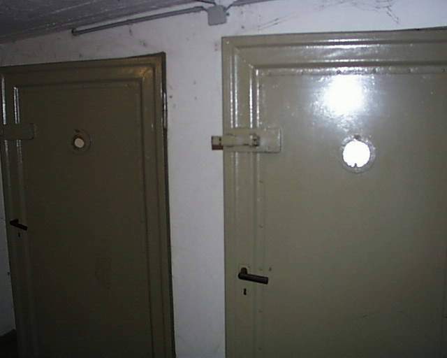 Es sind Türen, wie sie in Gefängnis üblich sind: Guckloch, zwei Riegel, auf der Innenseite keine Türklinke. Die Verwendung der beiden Räume ist unsicher.