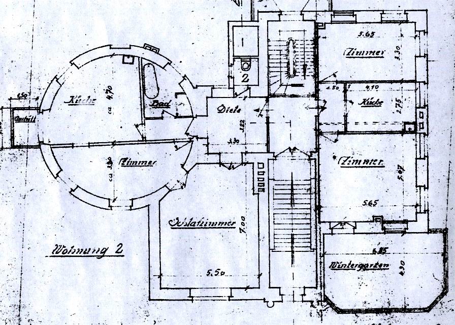 Als zweiten Schritt suchten wir den obersten Denkmalpfleger der Stadt Troisdorf, Herrn Jung, auf. Er überließ uns auf Treu und Glauben Blaupausen und die Villa betreffende Briefe.
